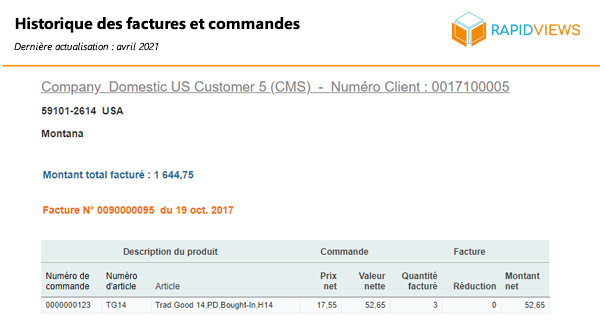 Ces exemples de rapports sont disponibles dans la librairie de rapports du module RapidViews SD.